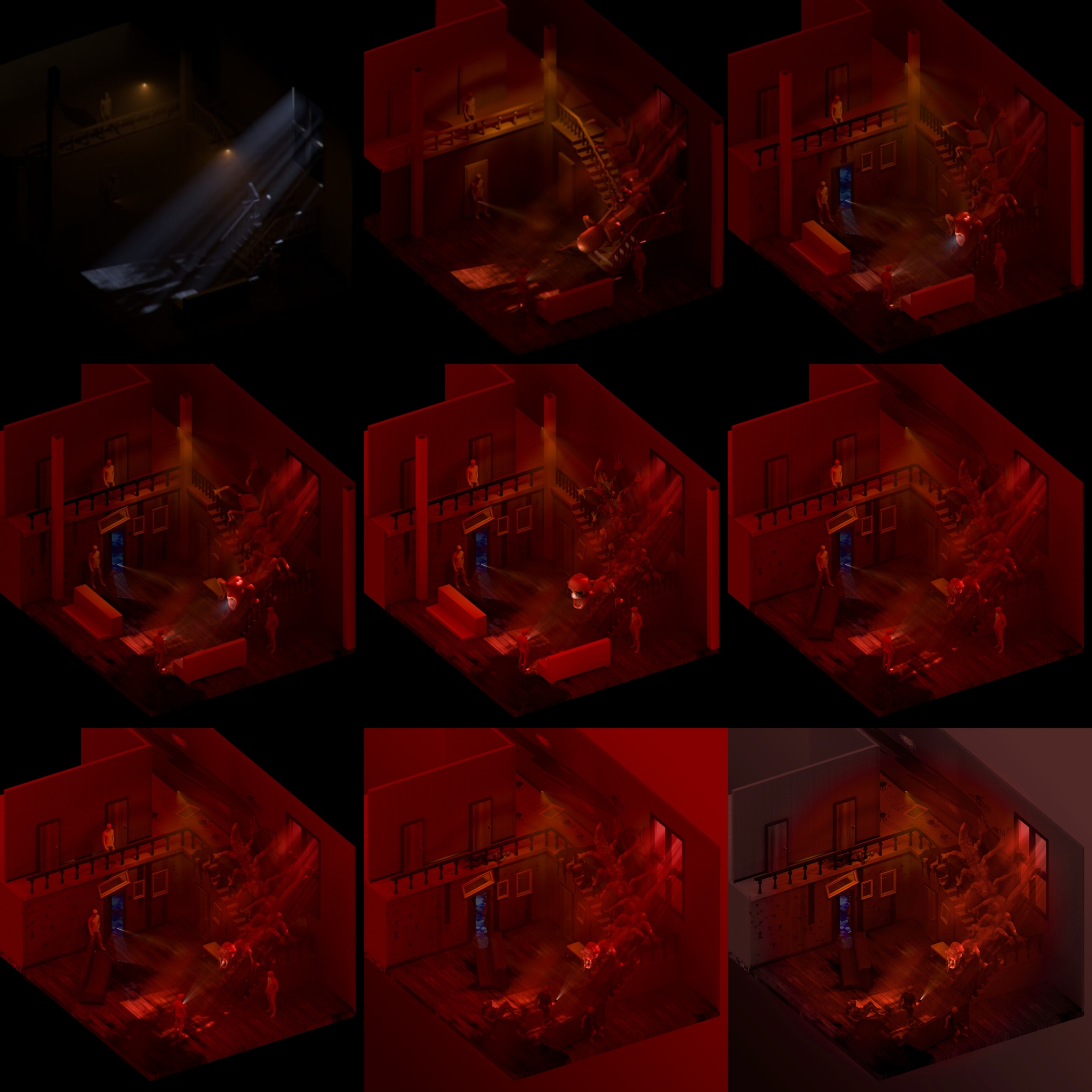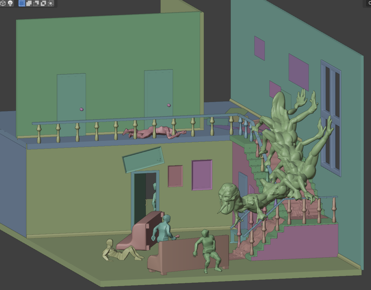 I went about this render trying to make a set piece that had some kind of moment "Frozen in time" a piece that looked both cinematic and story driven.